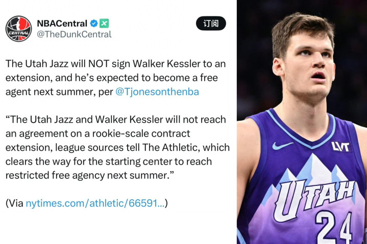 据爵士记者Tony Jones透露,凯斯勒未和球队达成一份新秀续约合同,明年夏天他将成为一名受限制自由球员(类似今年库明加的情况)。